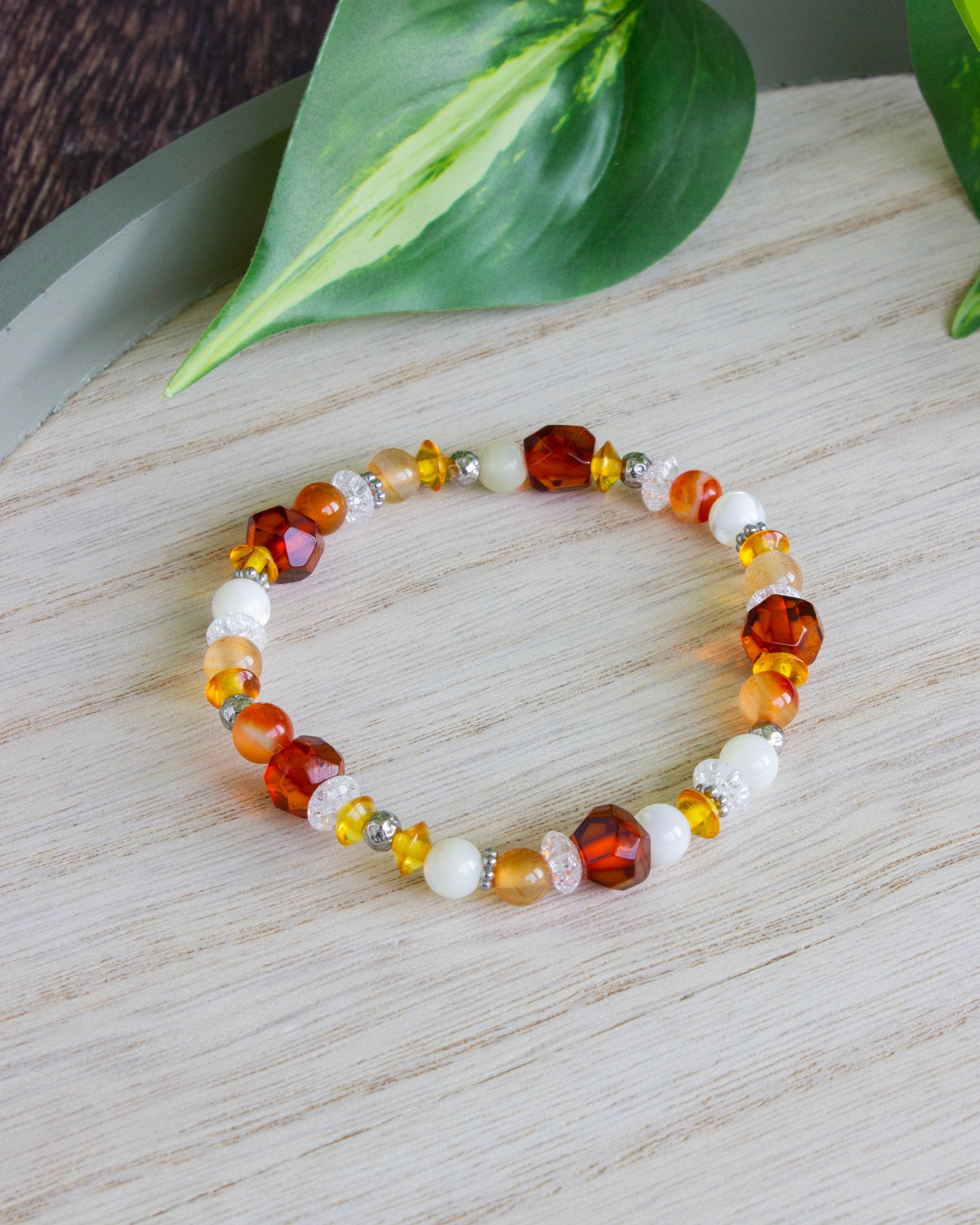 Armband | Bernstein Karneol Perlmutt Bergkristall | Edelstahl | AE119