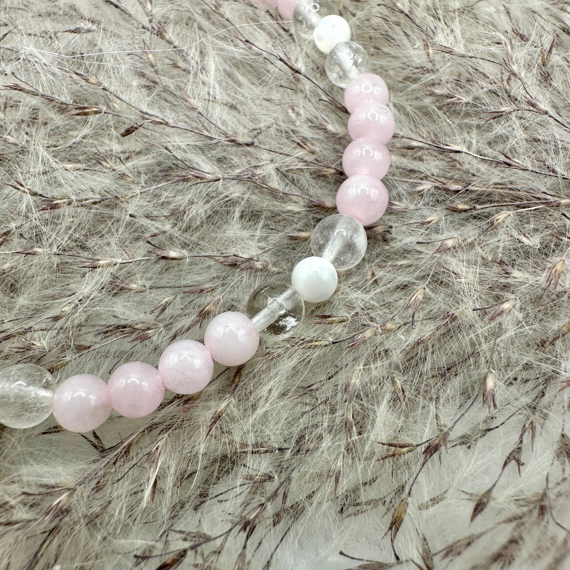 Armband Rosenquarz/Perlmutt/Bergkristall (AE054)
