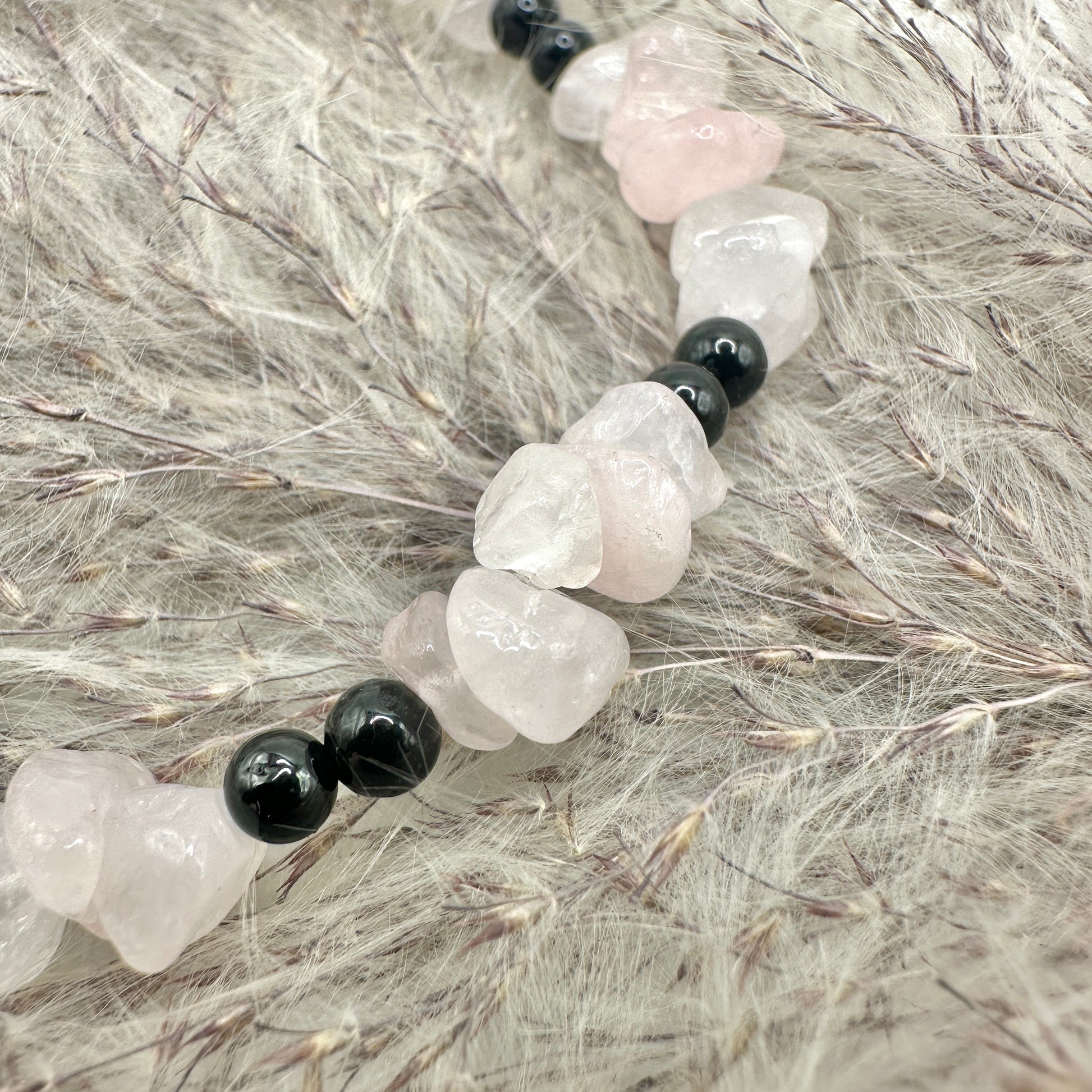 - 4mm Perlen Turmalin und Rosenquarzsplitter