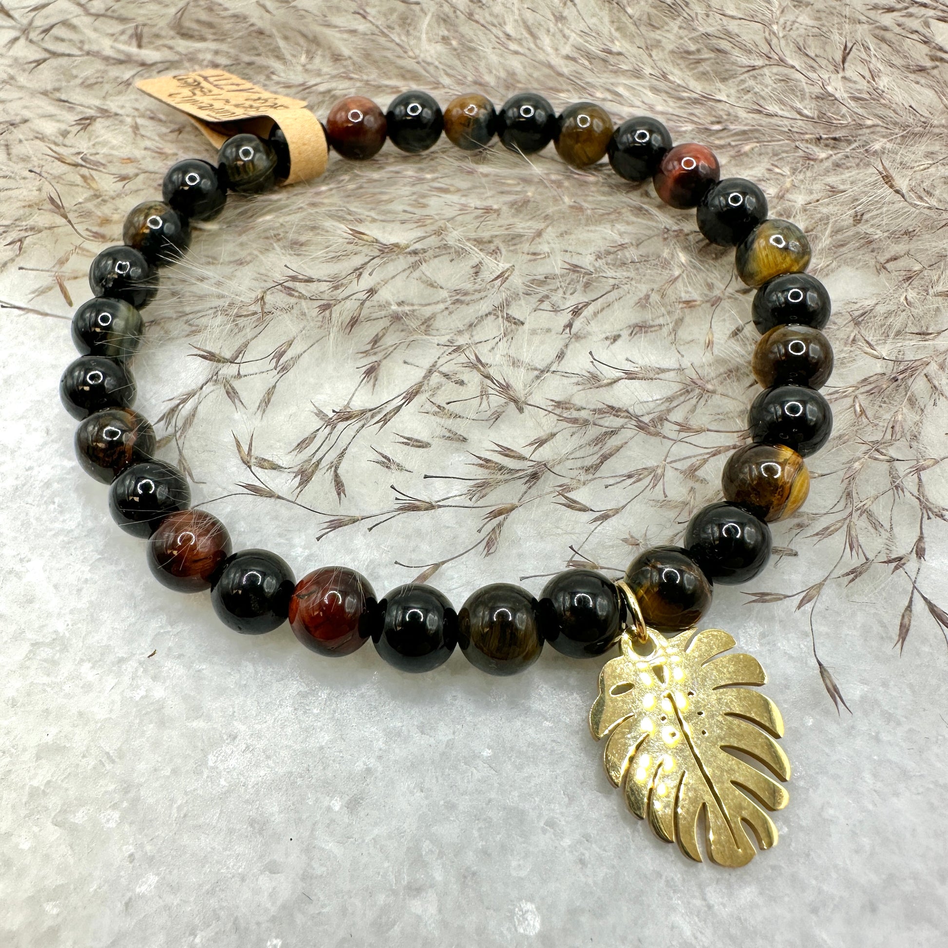 - 6mm Perlen Schw. Turmalin und Tiger-/Falkenauge