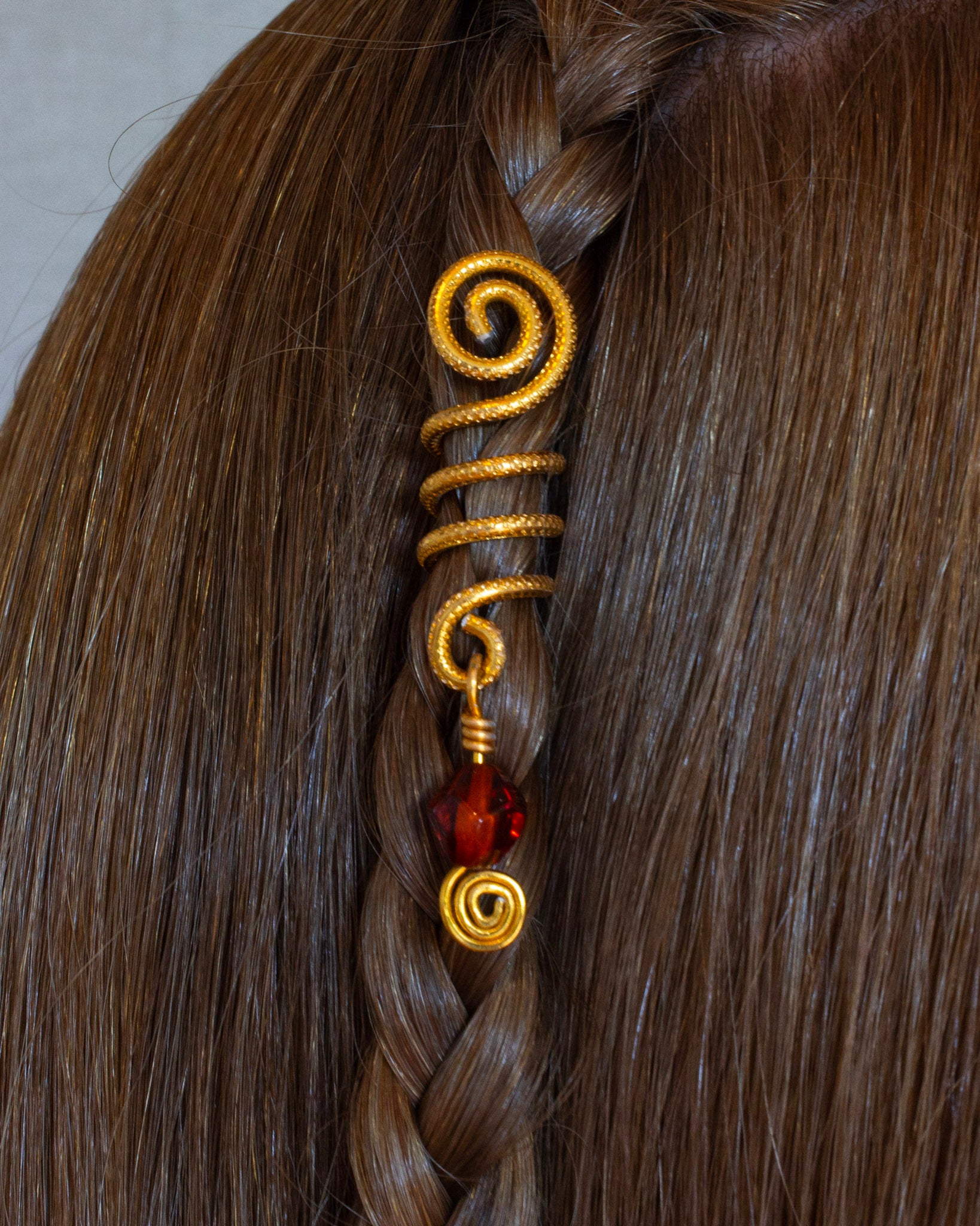 Jeder Wrap wird von mir sorgfältig aus federleichtem Alluminiumdraht gefertigt, teils mit Edelsteinen oder Charms kombiniert und so geformt, dass er sich mühelos ins Haar eindrehen lässt.