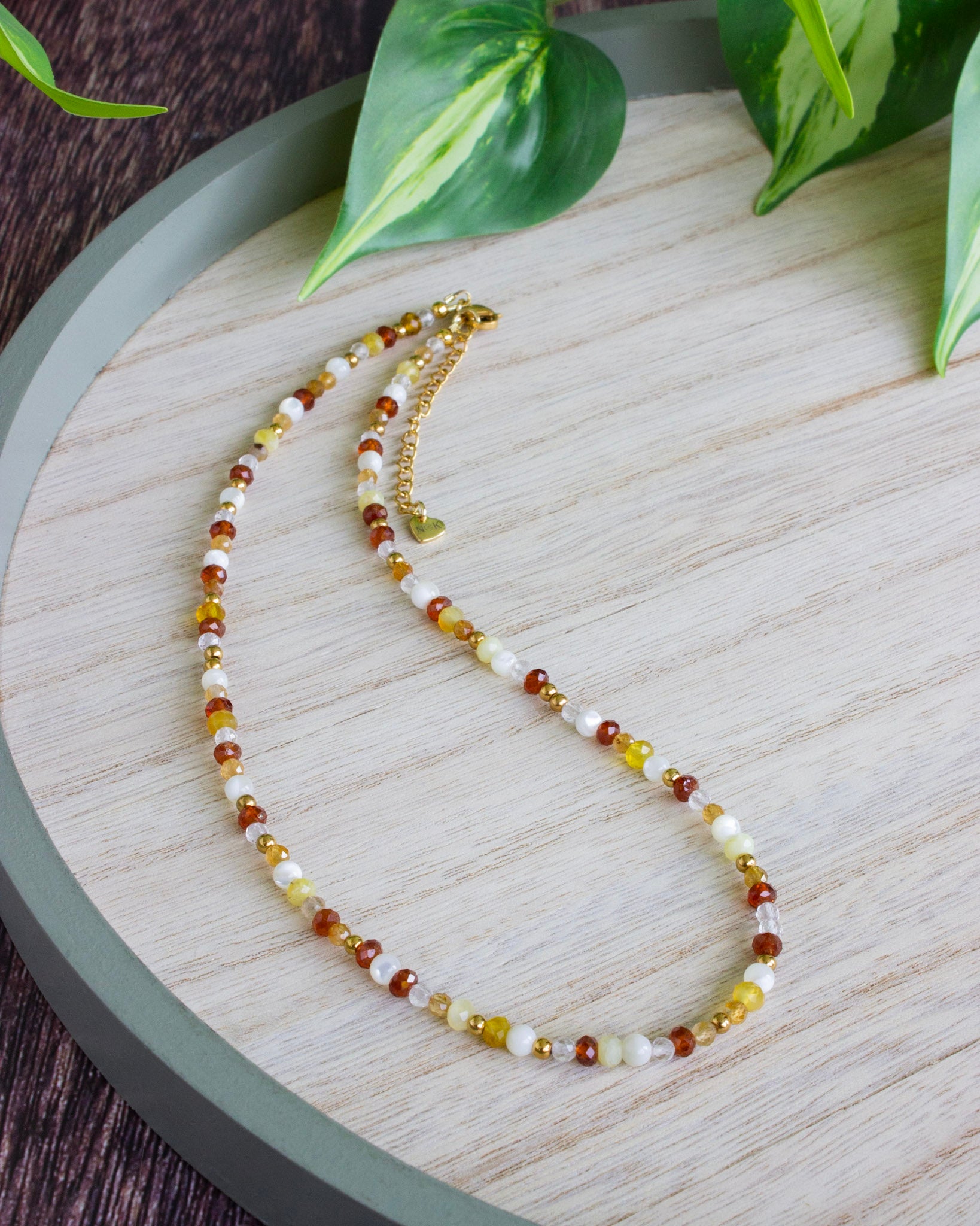 - 3-4mm Perlen Honigopal, Hessonit (Granat), Gelber Turmalin und Bergkristall facettiert; Perlmutt glatt