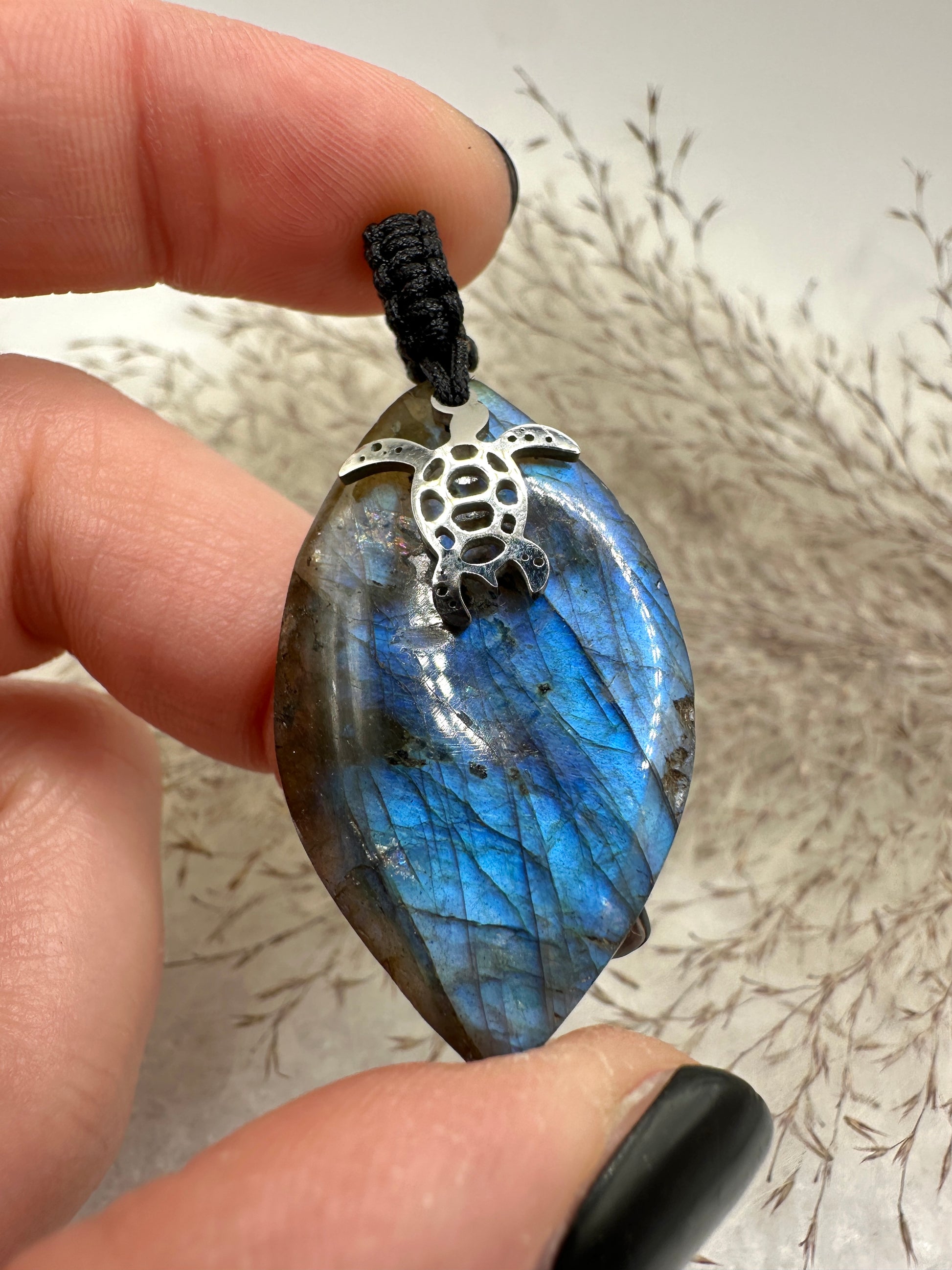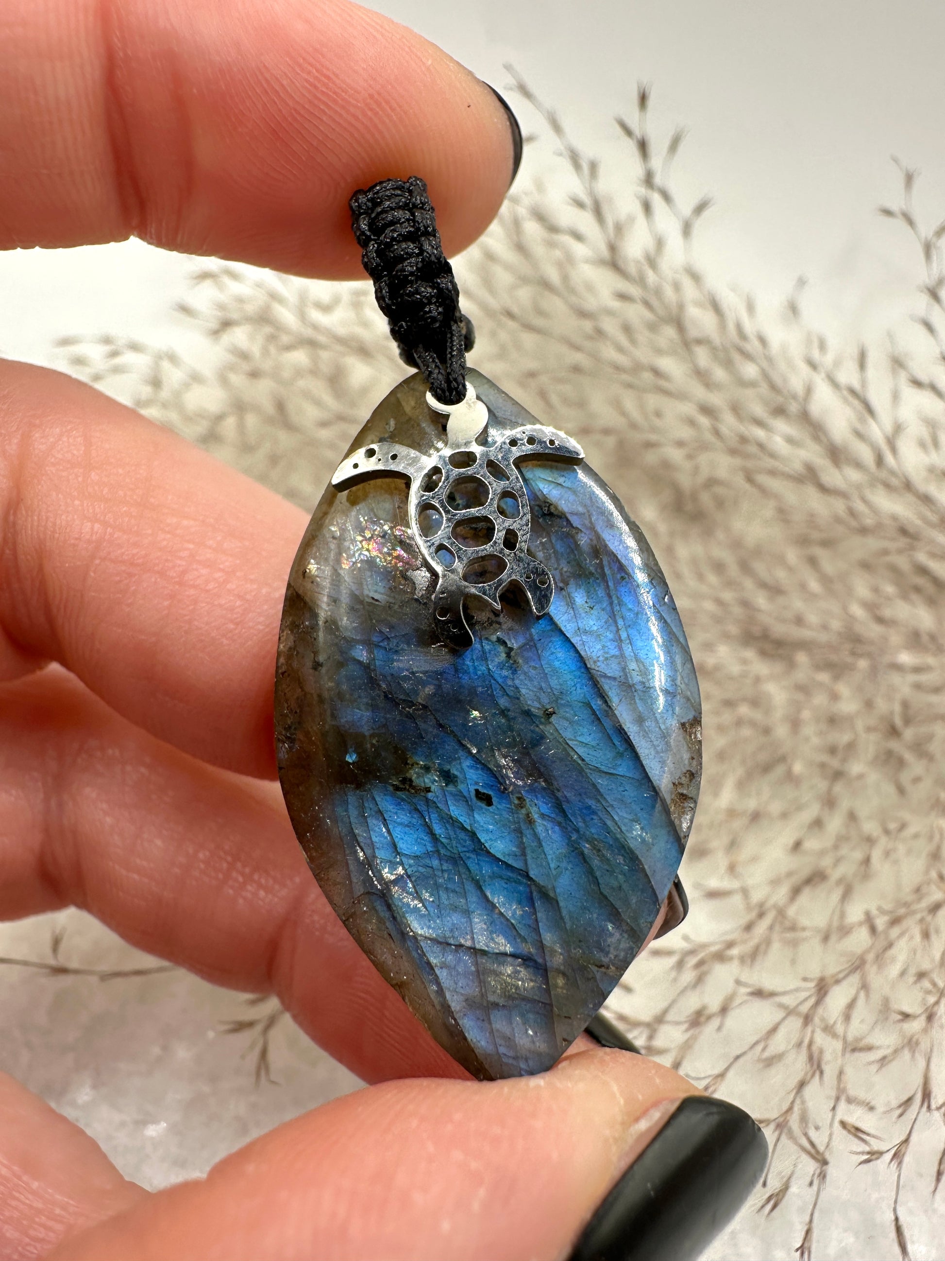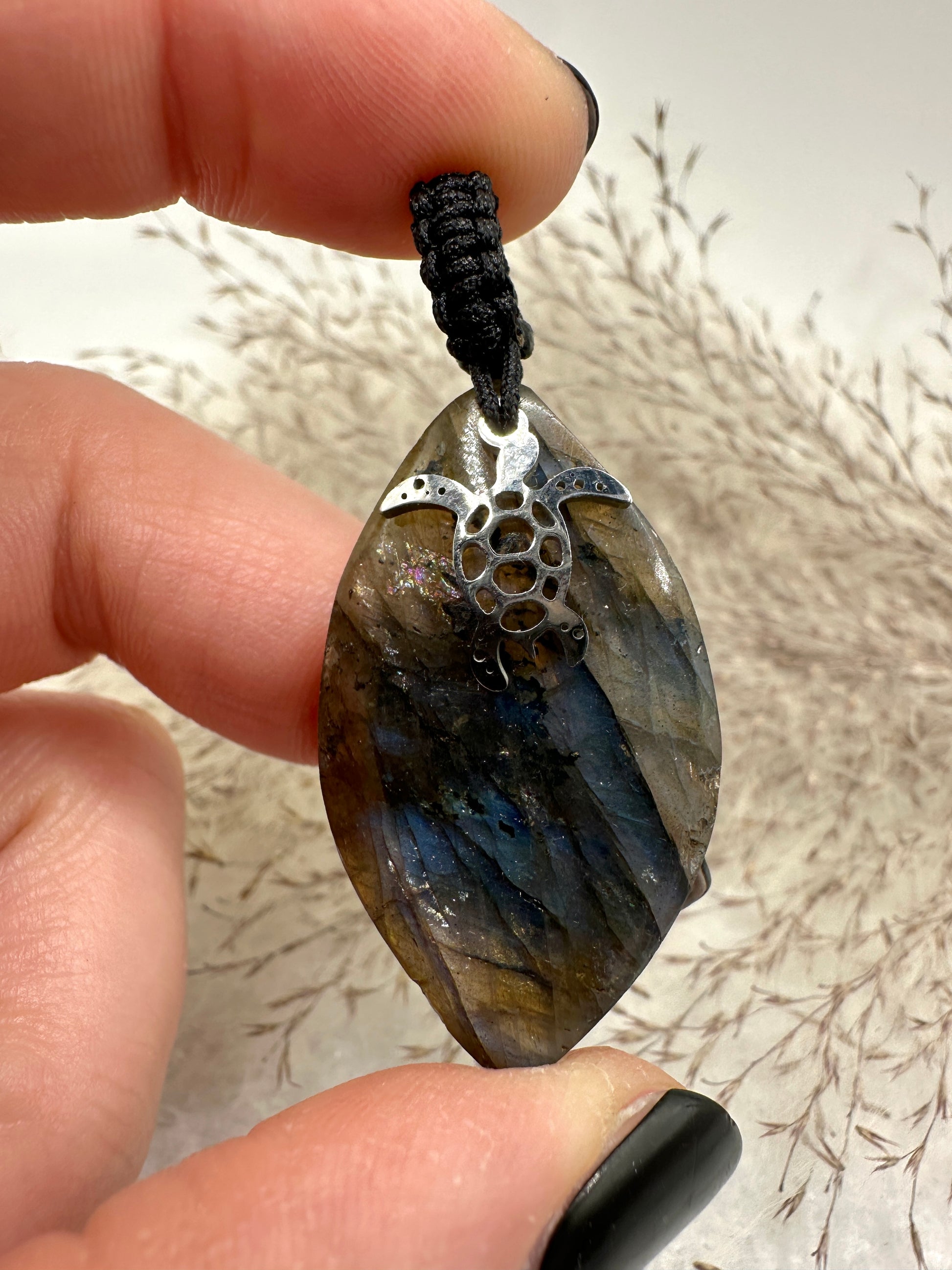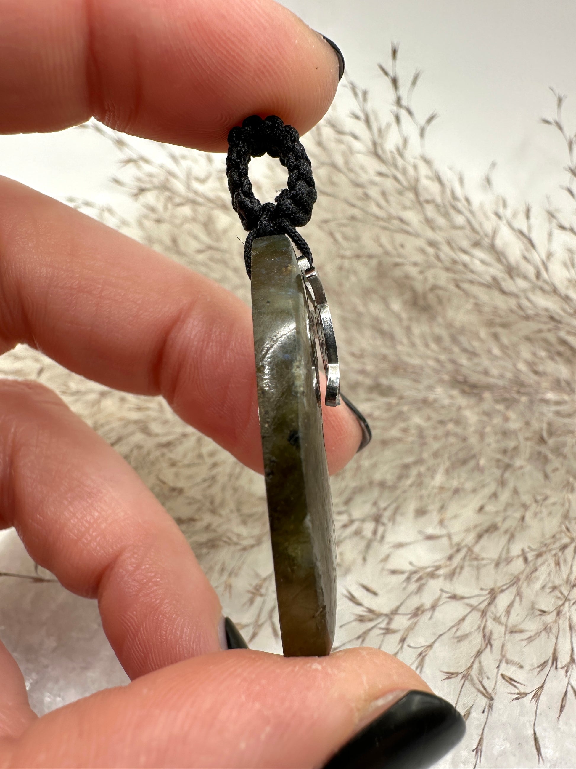 Kette mit Macramee-Anhänger Labradorit (KA003)
