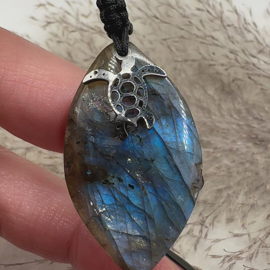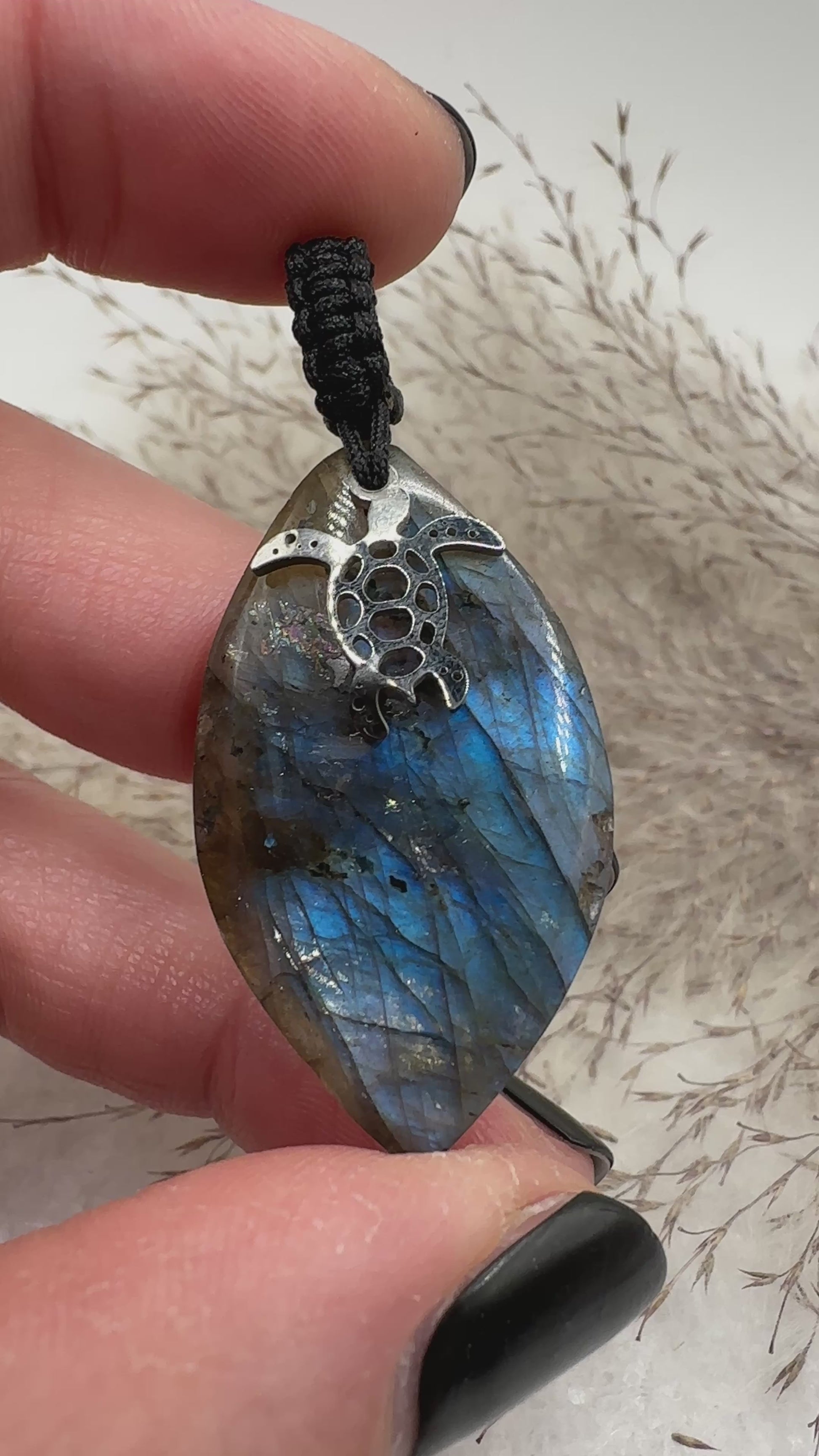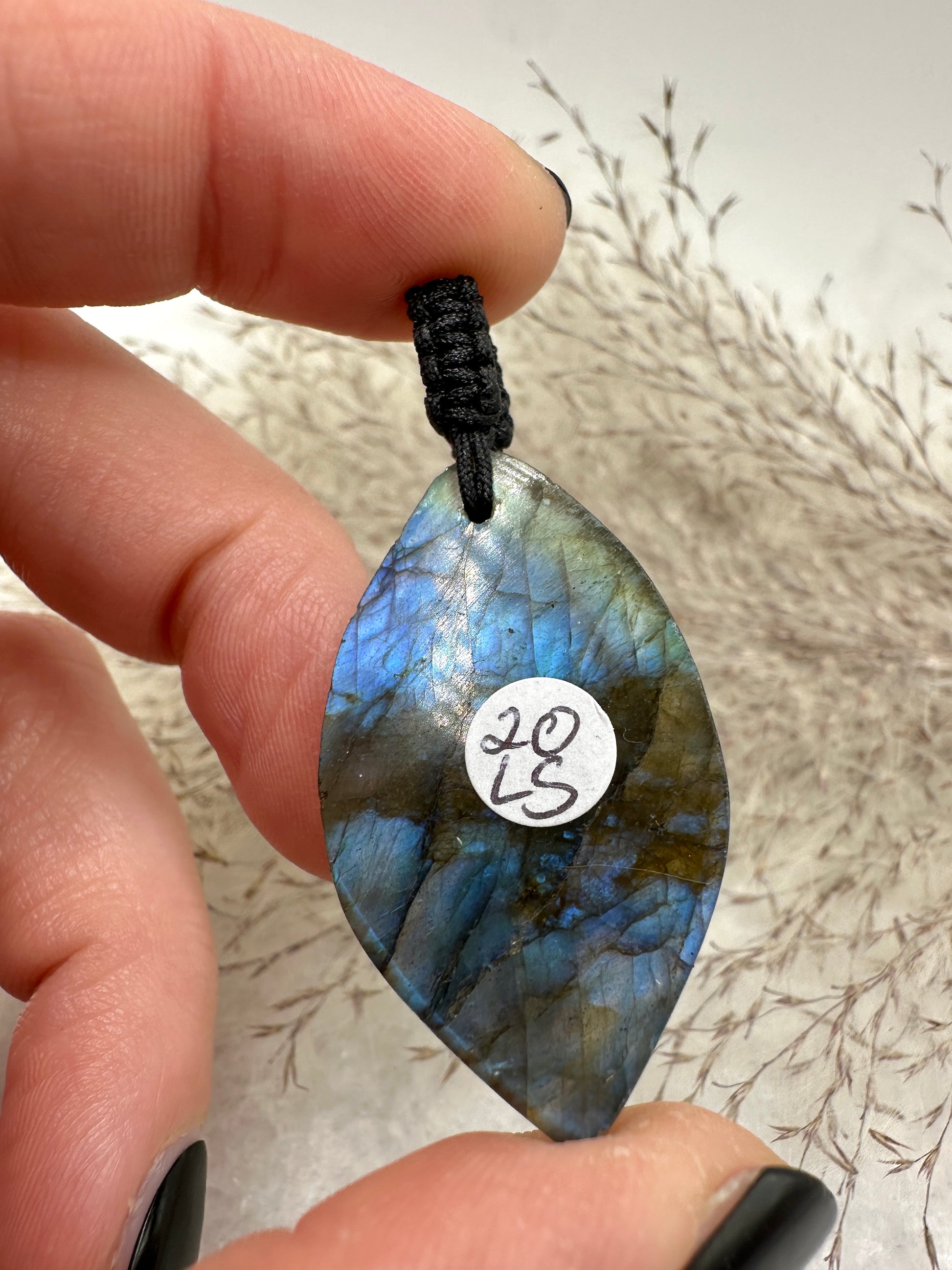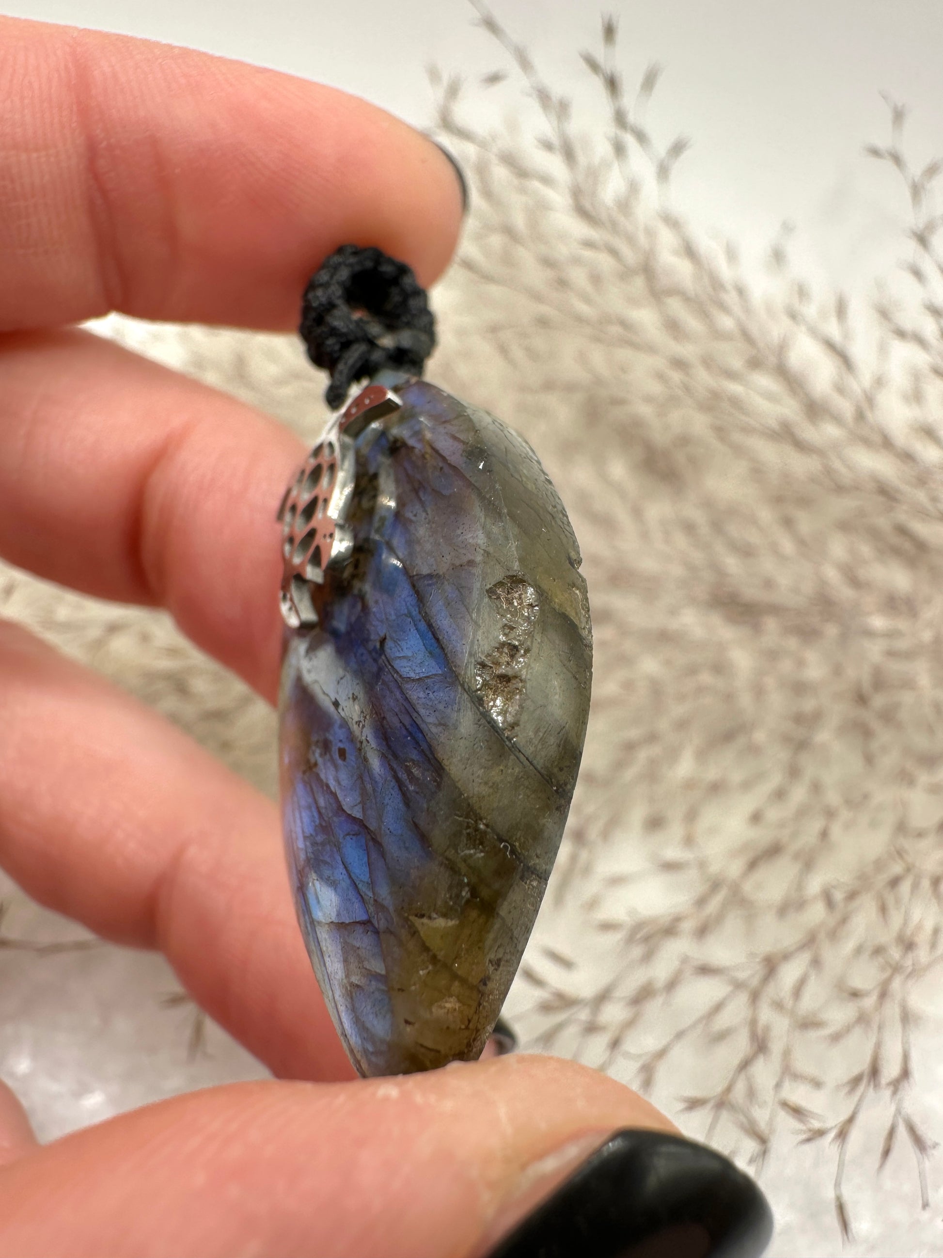 Kette mit Macramee-Anhänger Labradorit (KA003)