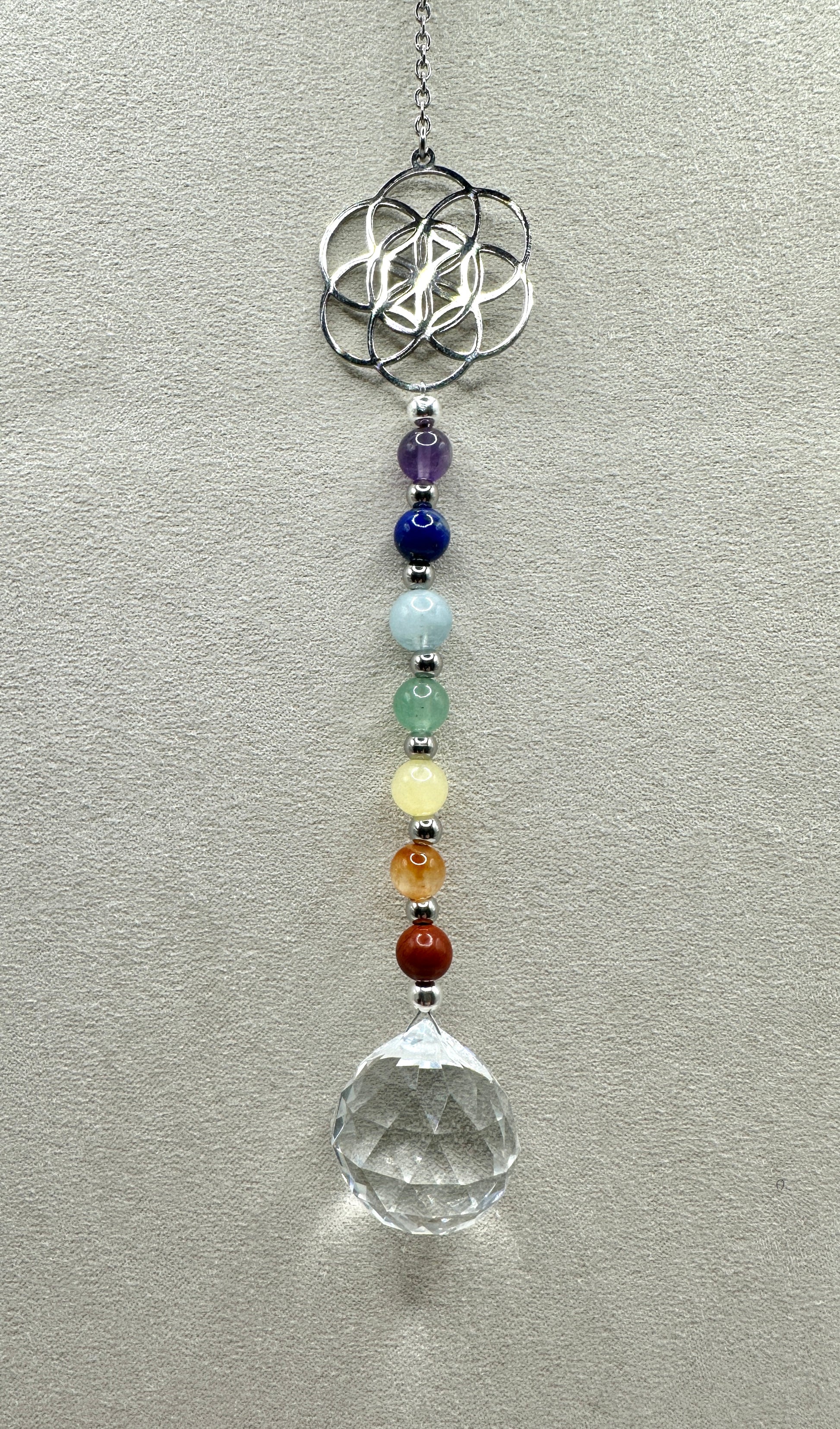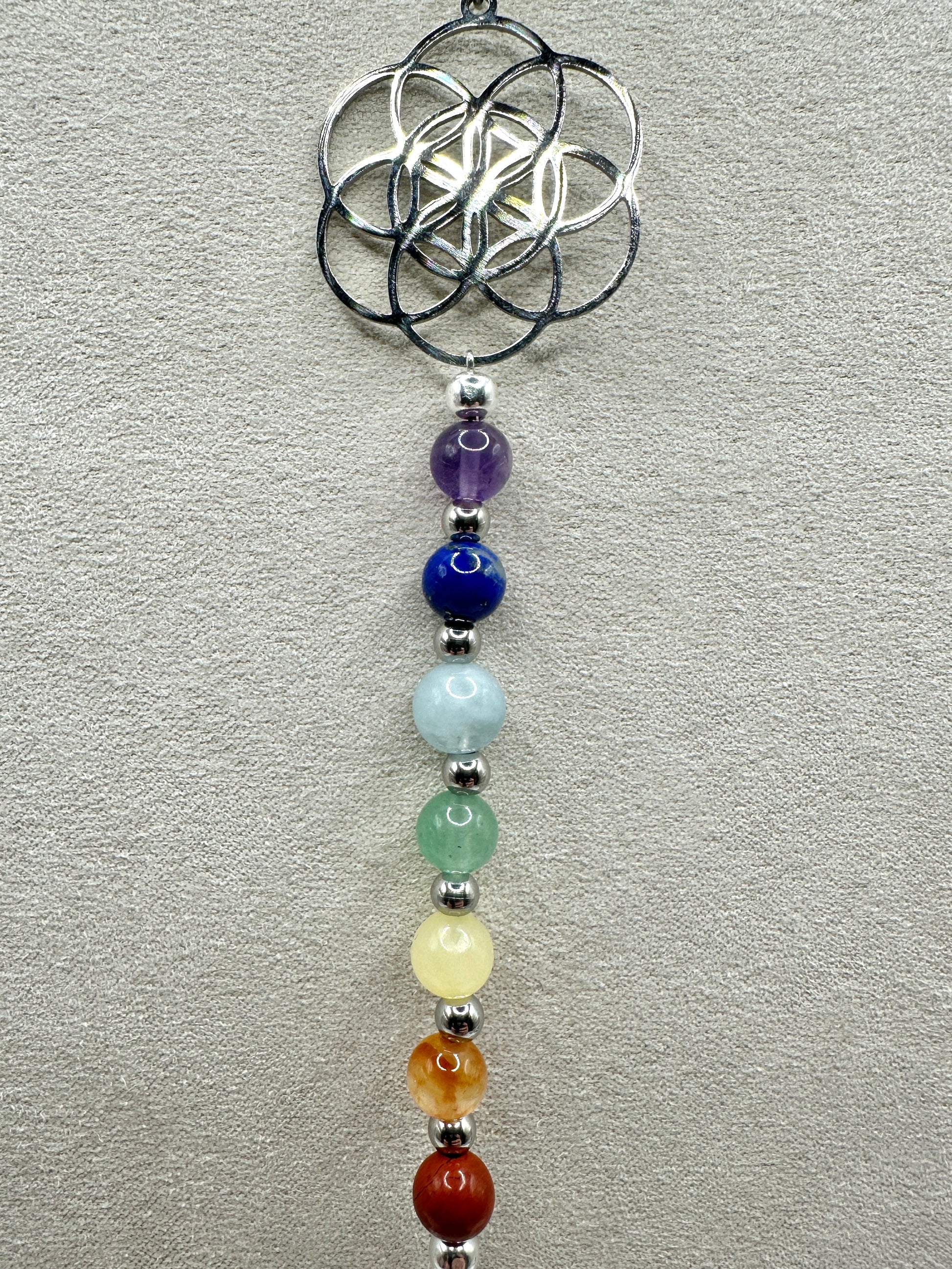 - Mini-Sonnenfänger mit Blume des Lebens und Edelsteinperlen passend zu den 7 Hauptchakre