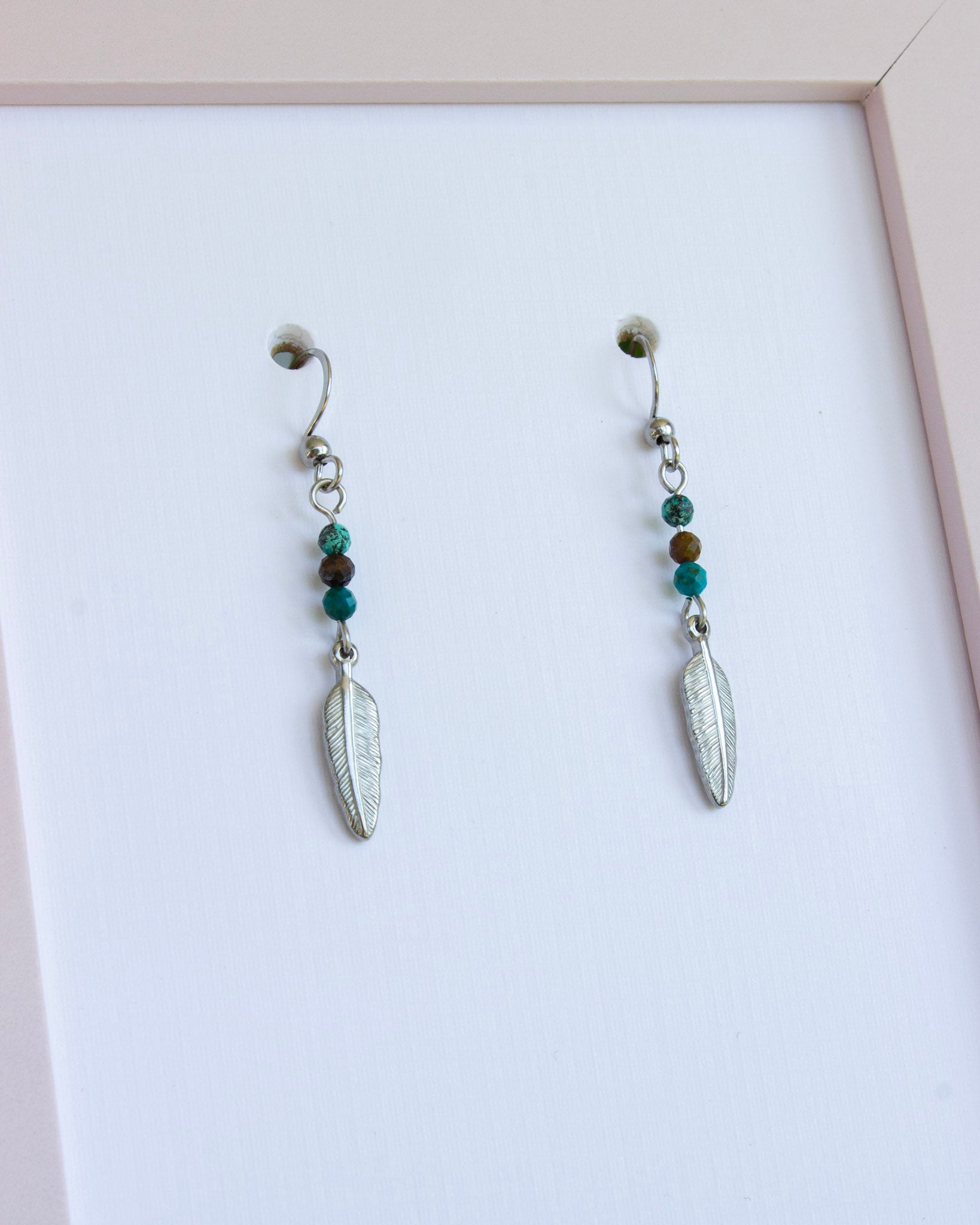 Ohrhänger Boho Feder | Chrysokoll | Silber | Edelstahl | OS050
