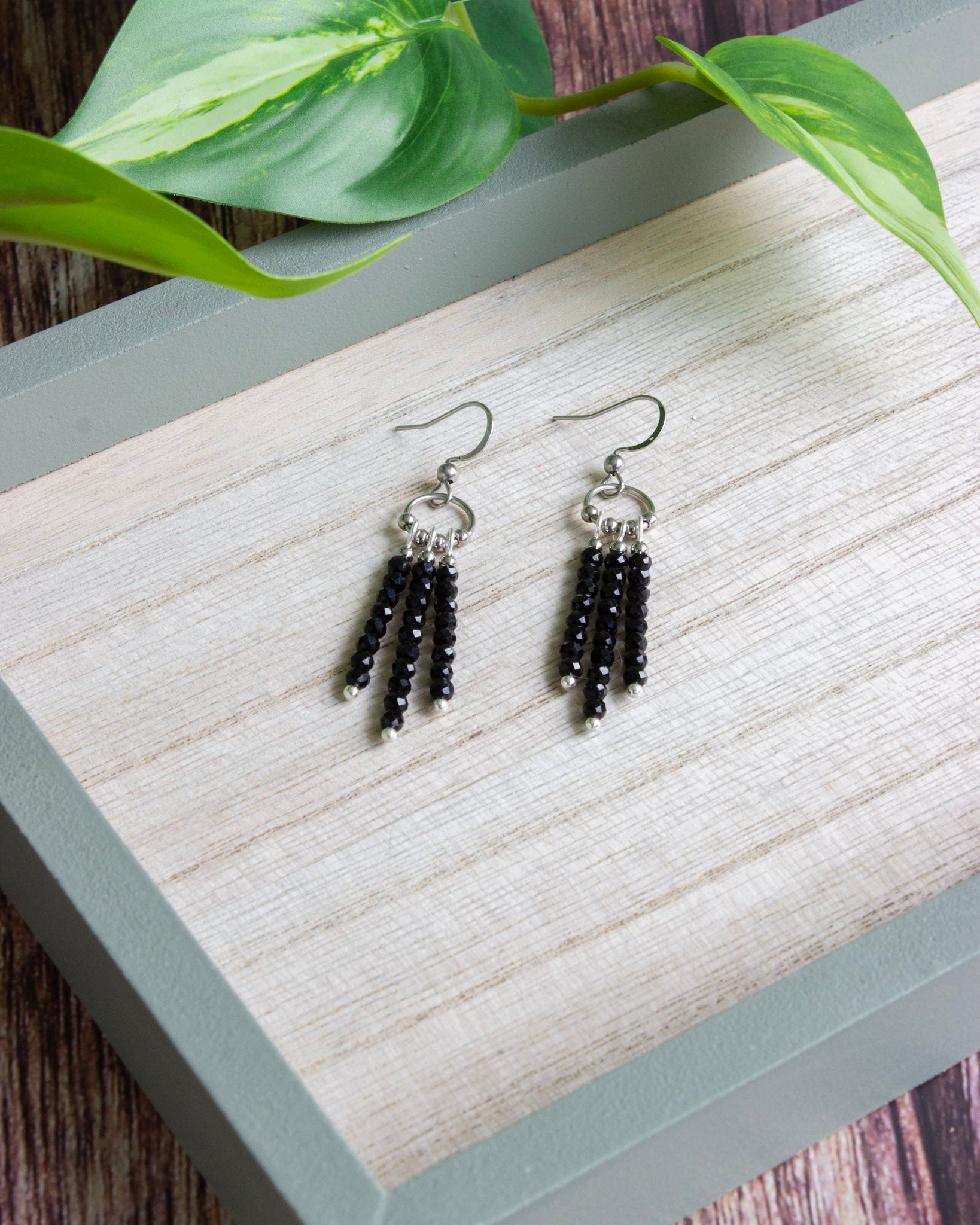 Ohrhänger | Boho | Schwarzer Turmalin | Silber | Edelstahl | OS039