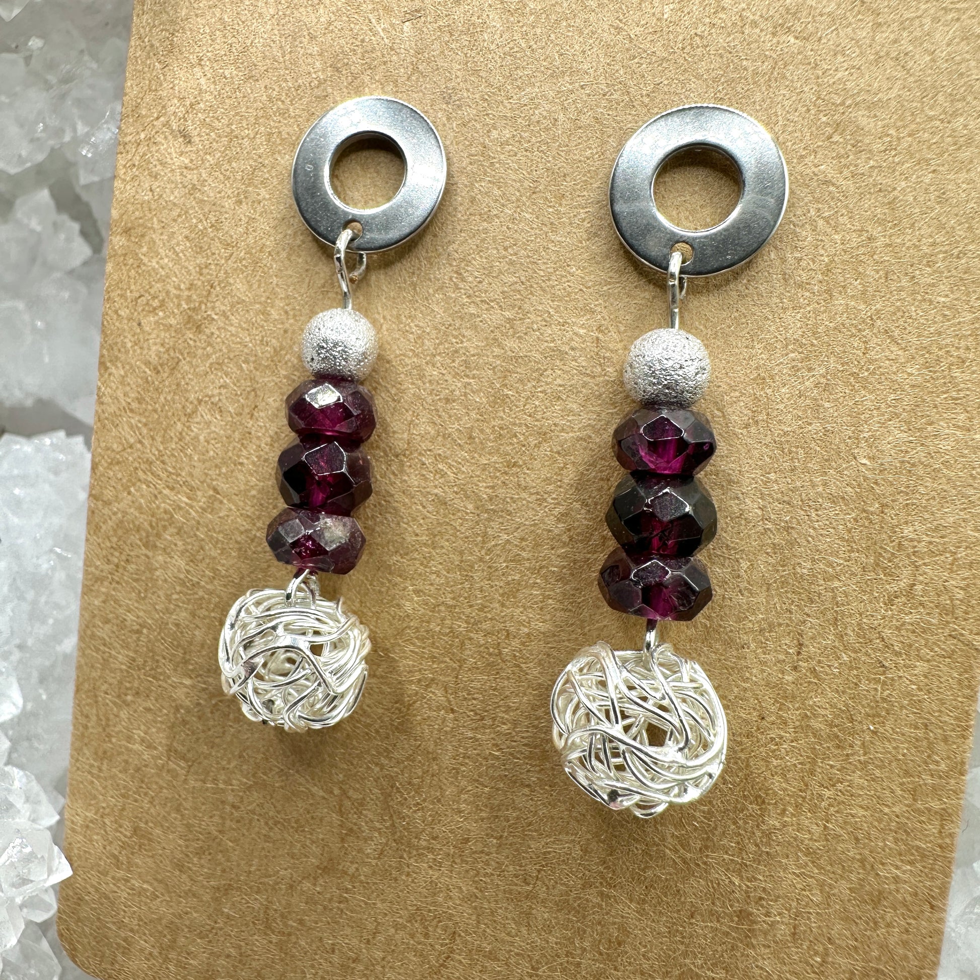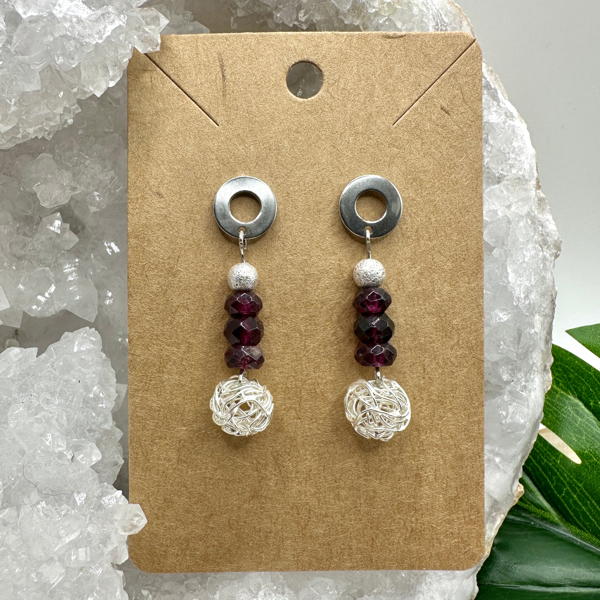 Ohrhänger Granat mit Drahtperle (OS012)