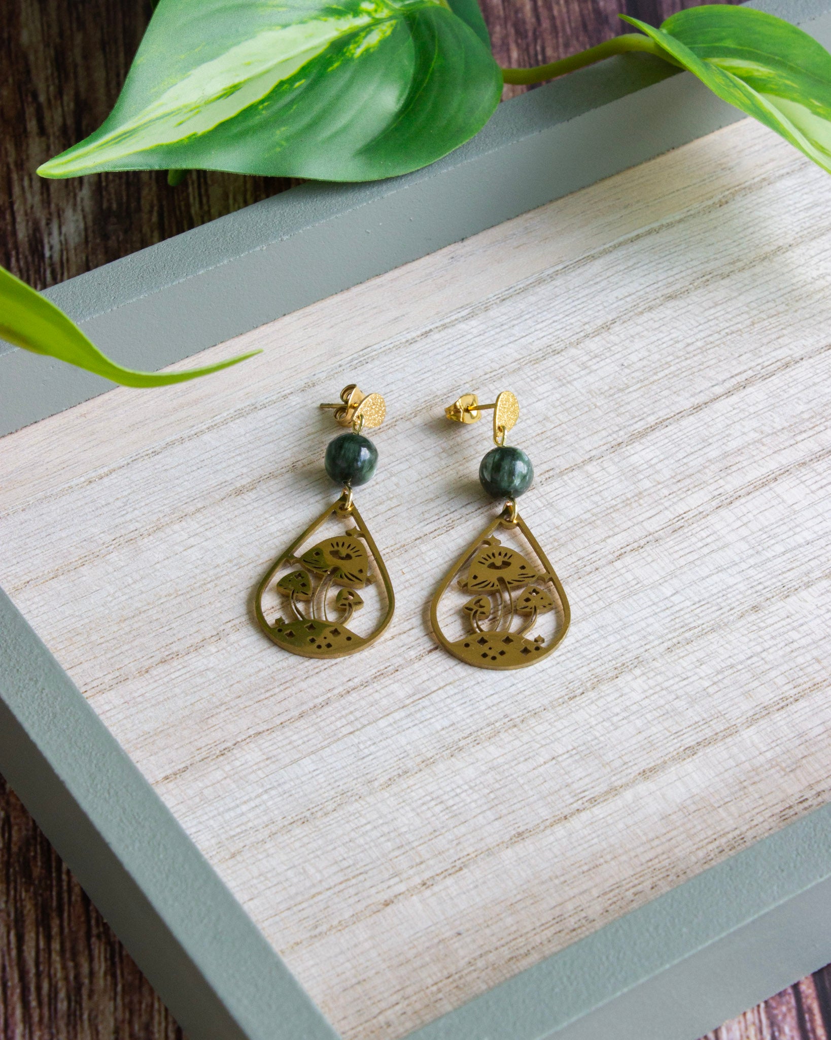 Ohrstecker | Mushroom | Seraphinit | Gold | Edelstahl | OS047