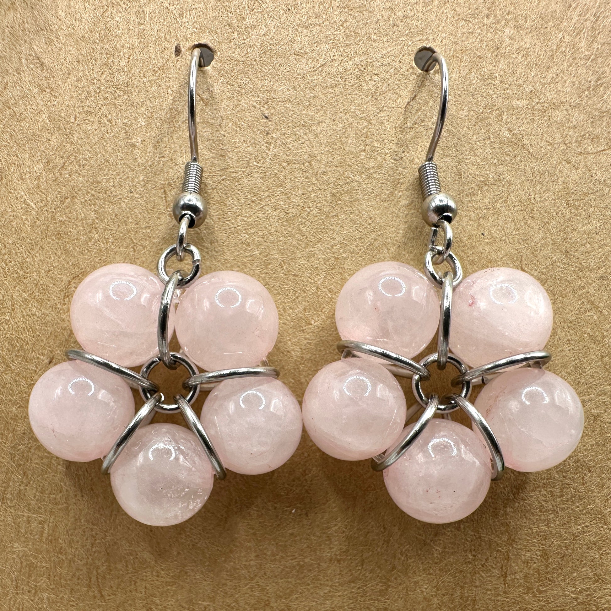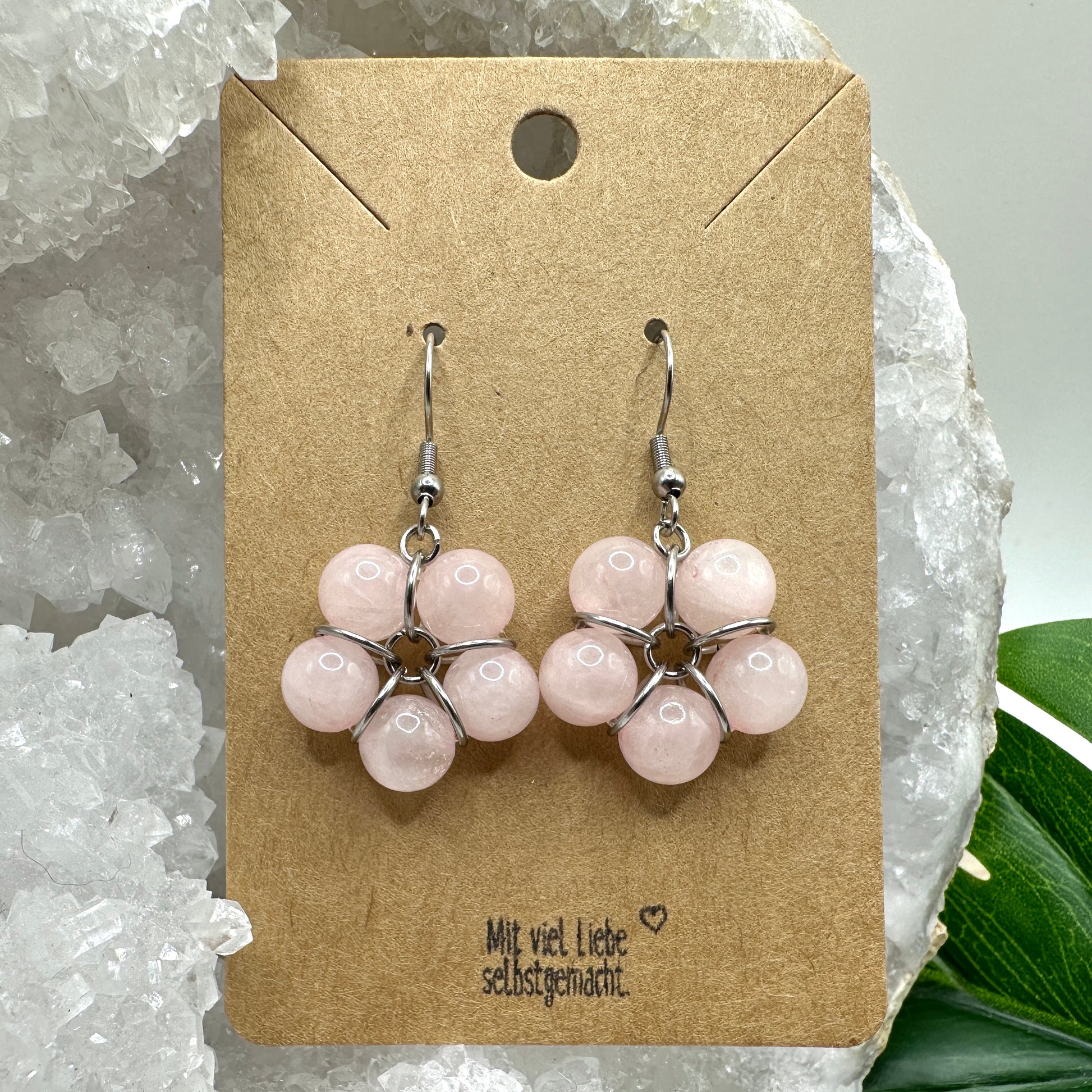 - Ohrhänger mit Perlenblume aus Rosenquarz