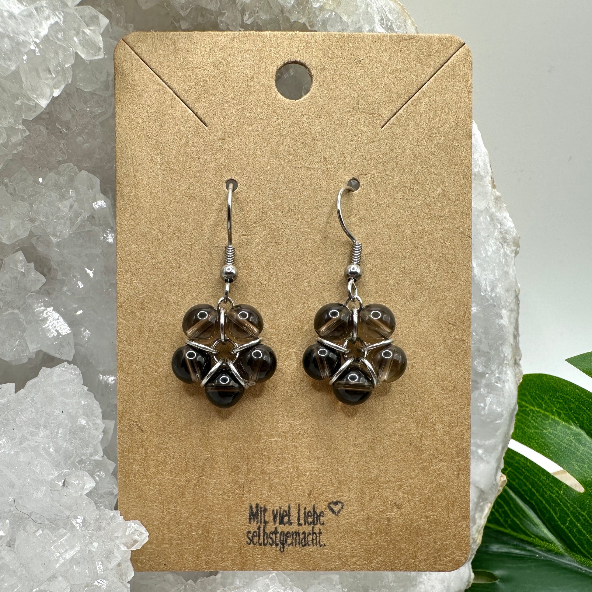 - Ohrhänger mit Perlenblume aus Rauchquarz