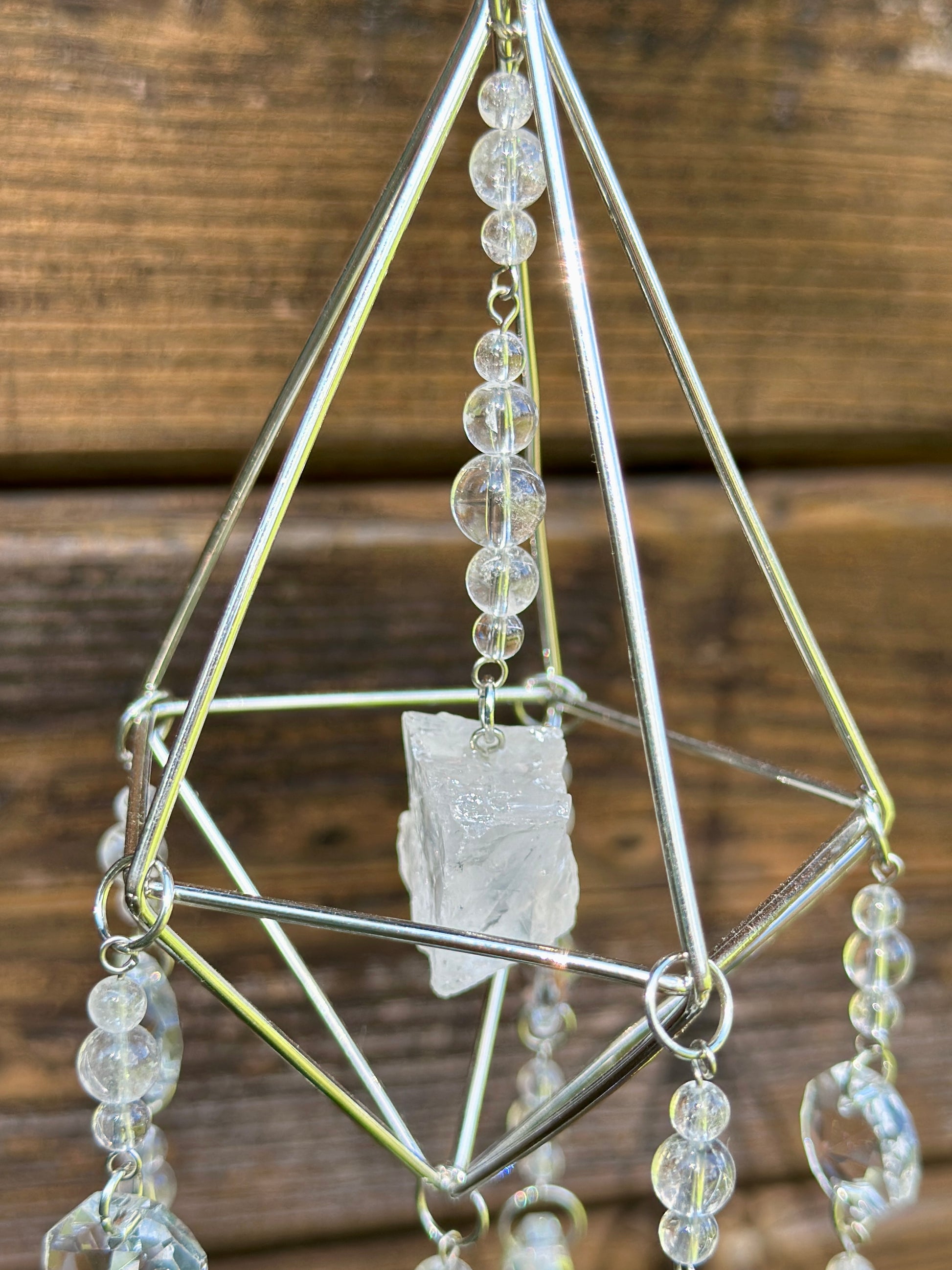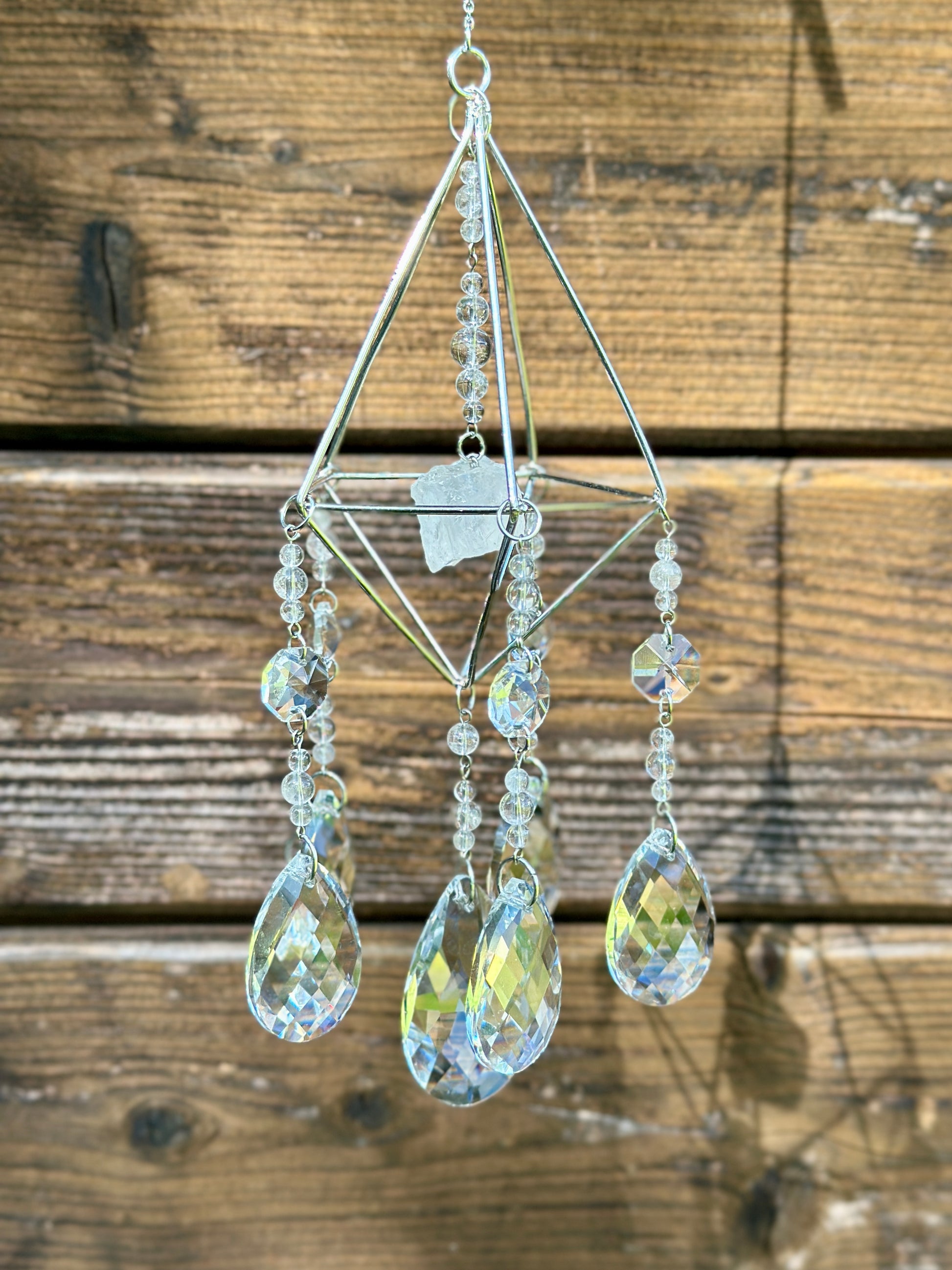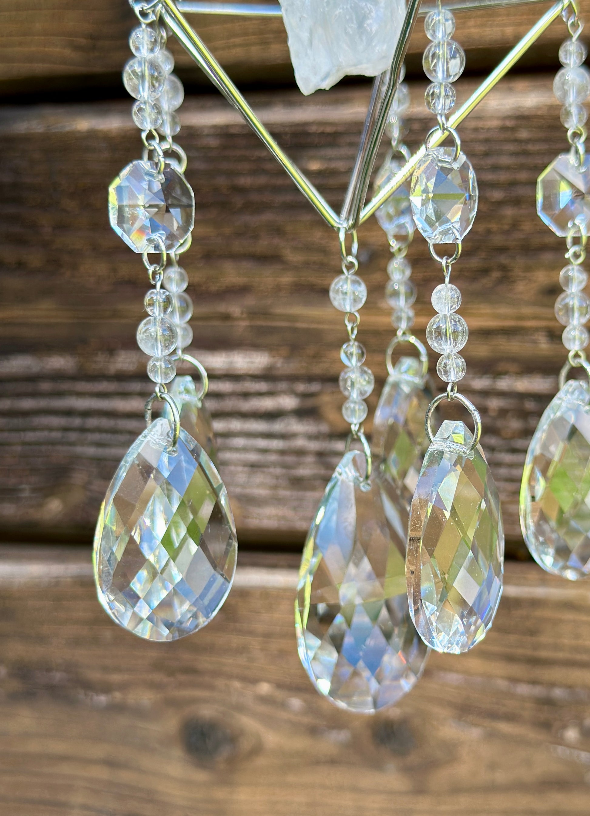 Verzaubere dein Zuhause mit diesem wunderschönen, handgefertigten Sonnenfänger mit Bergkristallperlen. An einem Fenster aufgehangen verwandelt er das Sonnenlicht in ein faszinierendes Spiel aus Regenbögen und verleiht deinem Raum einen Hauch Magie.